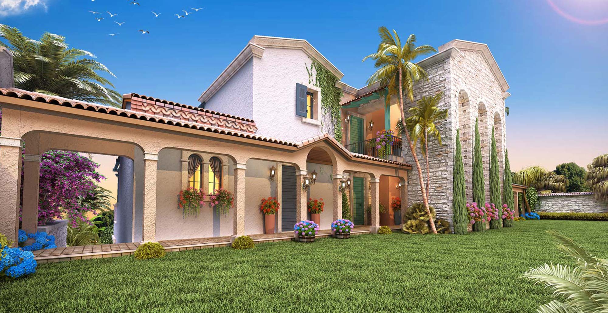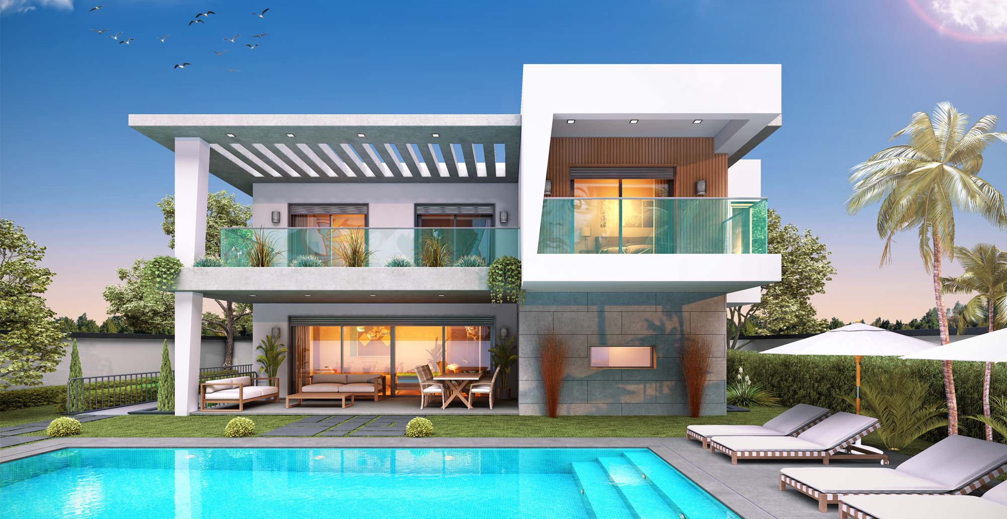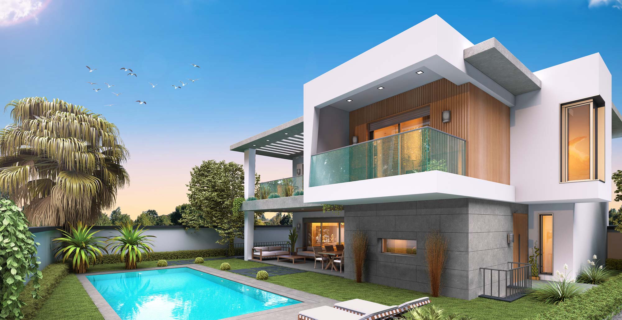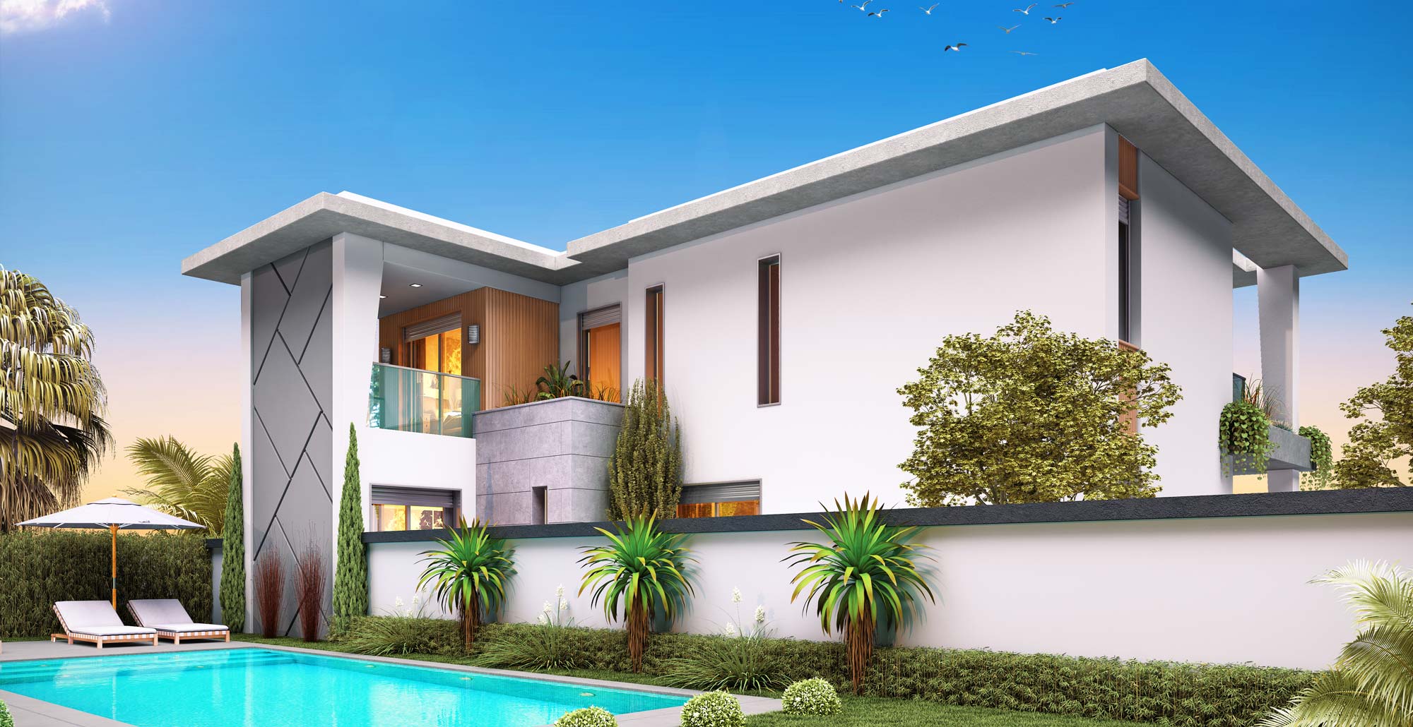 Our project, located in Güzelbahçe Yelki District, is situated on a 2,000-square-meter area and features an impressive landscape with 8 palm trees, each 8 meters tall, and 1,000 square meters of lush grassland. Our company began this project in 2008 and successfully completed it in 2009.