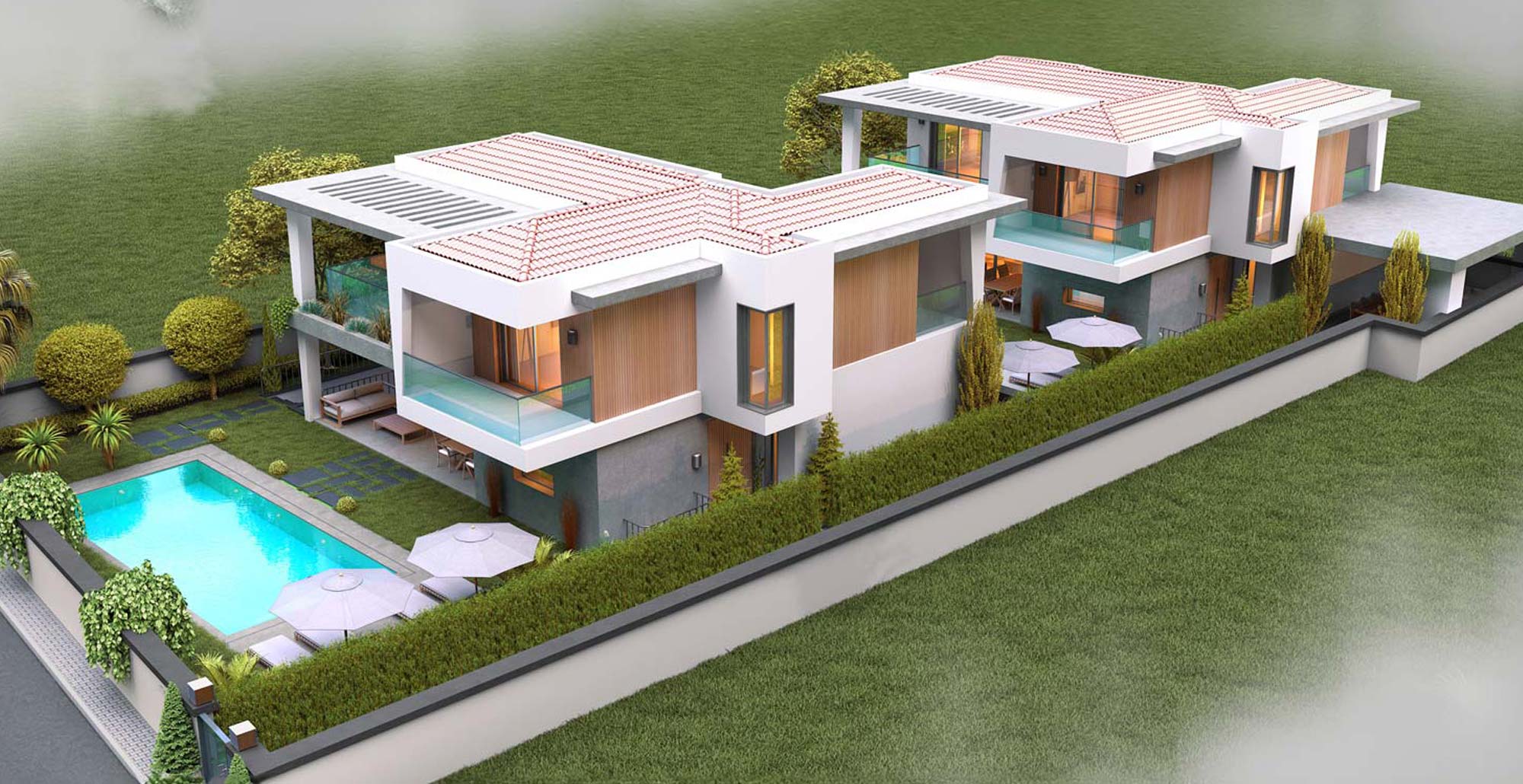 The project consists of 5 apartments, each with a size of 190 square meters. This exclusive development includes advanced technologies such as a swimming pool, jacuzzi, Rehau underfloor heating system, and Toshiba heat pump. Additionally, the project ensures high security and comfort with open parking, automated entrance gates, closed-circuit camera systems, video intercom systems, and security checkpoints.